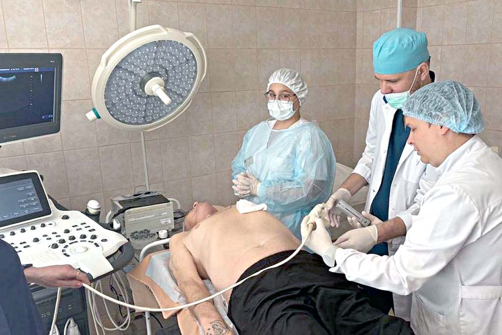 Второй мастер-класс – миниинвазивный забор операционного биопсийного материала для диагностики. Специалист отделения рентгенохирургических методов диагностики и лечения Станислав Мезенцев провел трепан-биопсию новообразований внутренних органов под УЗ-навигацией. Из-за риска осложнений трепан-биопсию в региональных онкоучреждениях выполняют редко. Необходимы правильная подготовка пациента, высокая квалификация и отточенные действия врача. На мастер-классе под руководством ростовского специалиста были отработаны необходимые навыки и сложные ситуации.