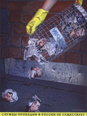 А откуда берутся рецидивисты? Ответ на плакате Дины Тамашакиной «Службы пробации в России не существует»: из мусорной корзины, сделанной из «колючки» с надписью «тюрьма», на мостовую высыпают «мусор» смятые бумажки с лицами людей изломанные, исковерканные судьбы И проблему не решить, пока государство не создаст системы по адаптации тех, кто хочет нормальной жизни после зоны, напоминает дизайнер.