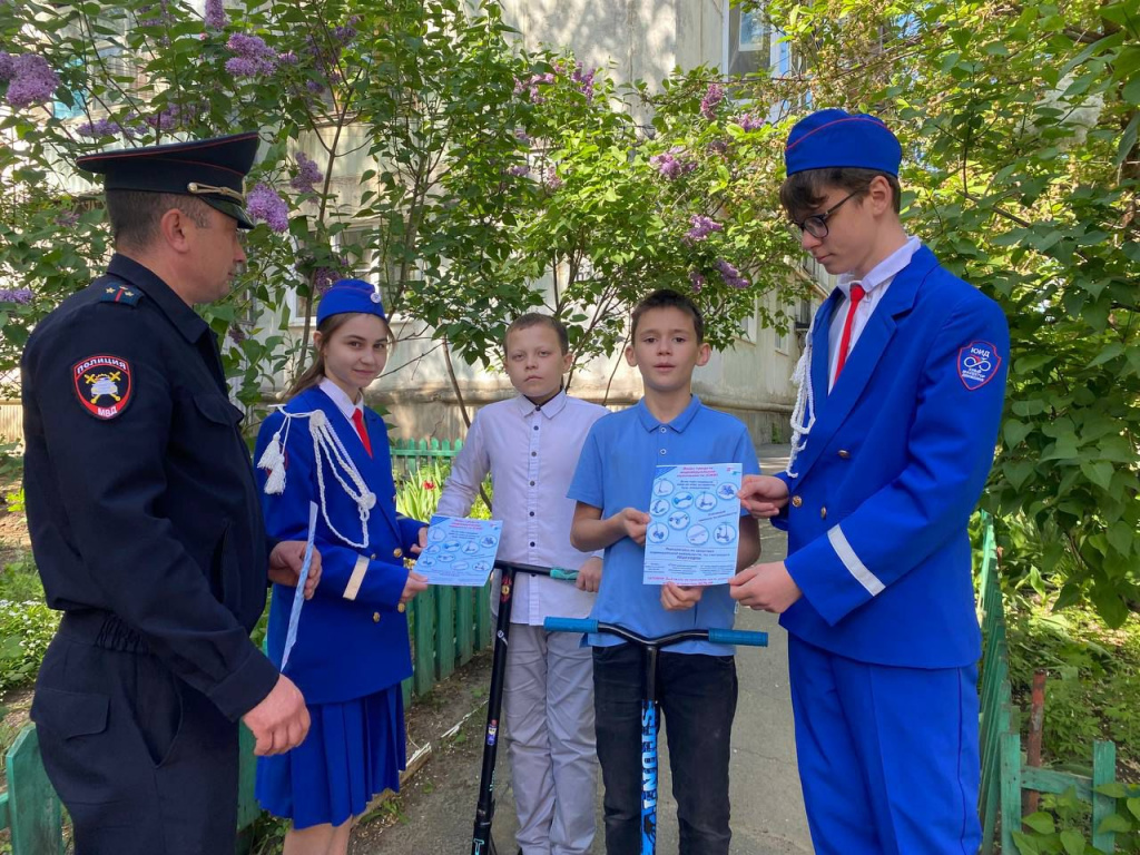 Юидовцы вместе с другими ребятами повторили правила перехода через проезжую часть дороги, правила управления самокатом и велосипедом. И тут же все вместе закрепили полученные знания на практике. Старший лейтенант полиции А. А. Новиков советовал любителям самокатов и велосипедистам быть внимательными и дисциплинированными и обязательно следовать ПДД.