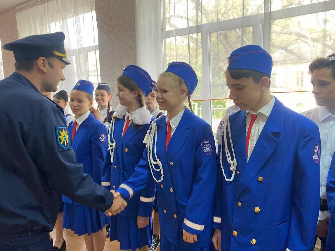 Школьники, которые встретились с Иваном Павловичем, были в казачьей и юнармейской форме. Юидовцев представляли ребята из отряда «Перекресток».