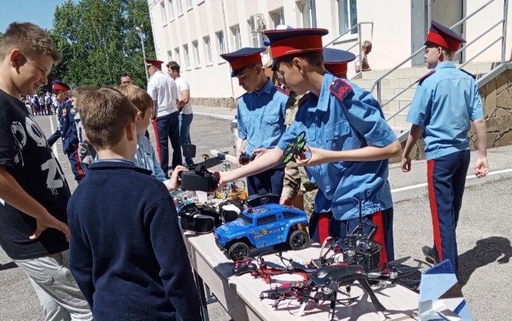 Педагоги-кураторы секций «Робототехника», «ВСК «Пластун», «Стрельба из пневматической винтовки» провели открытые занятия для школьников. На плацу в этот день были выставлены экземпляры разных типов оружия и экипировки, гости могли поближе познакомится с ними и потрогать своими руками. На стенде по робототехнике были представлены, роботы, БПЛА самолетного типа, квадрокоптеры и и такие высокотехнологичные устройства, как VR шлемы, FPV шлемы.