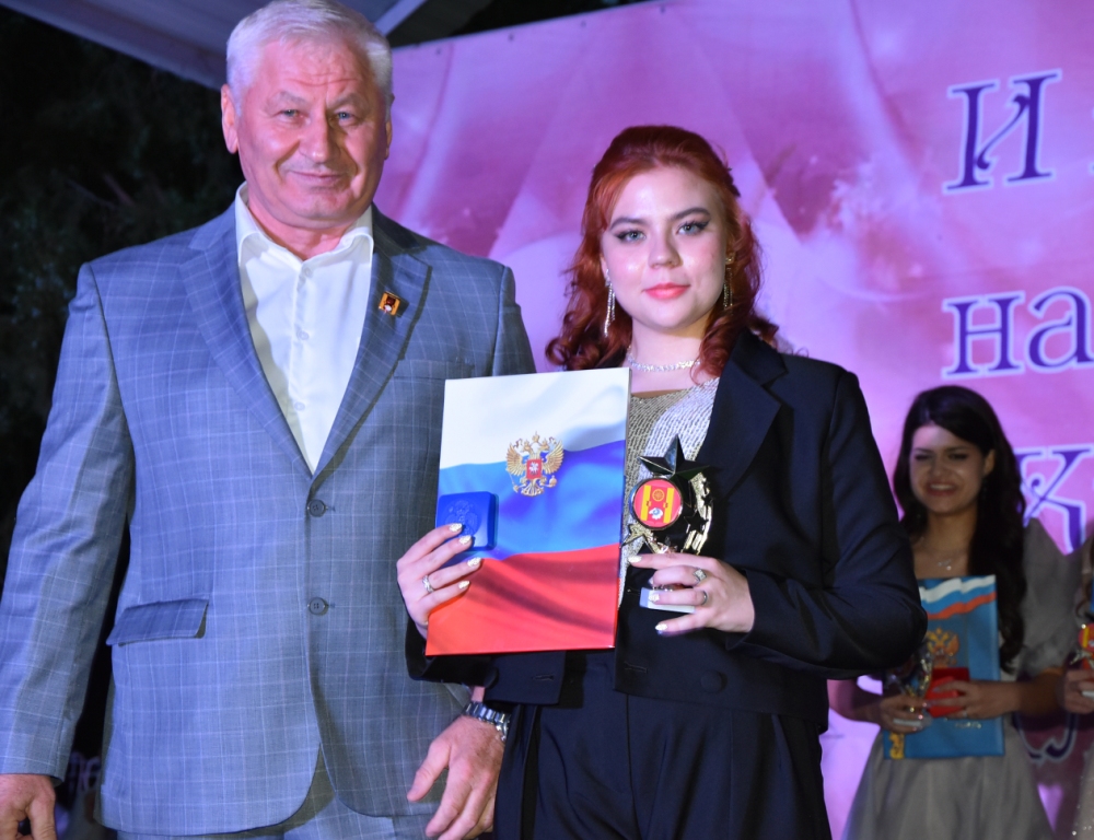 Глава администрации района А. П. Пустоветов и серебряная медалистка Ремонтненской гимназии №1 Дарья Евкина