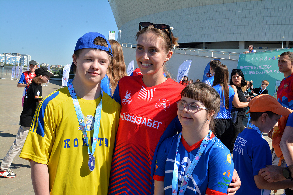 Дистанция составила примерно 250 метров. Чтобы преодолеть даже такое небольшое расстояние, особенным ребятам нужно гораздо больше усилий, чем другим. Они бежали по площади перед «Ростов Ареной» сами или вместе с близкими. Рядом всегда были волонтеры.
