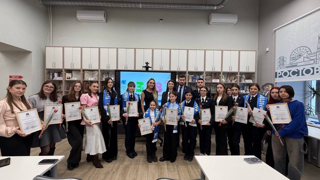 Церемония награждения активистов совета молодежи состоялась в читальном зале ростовской библиотеки имени М. Горького. Её приурочили к двум датам - Международному женскому дню 8 марта и Дню Защитника Отечества. А организовали по инициативе секретаря Ленинского районного местного отделения партии «Единая Россия» Юлии Мищук.