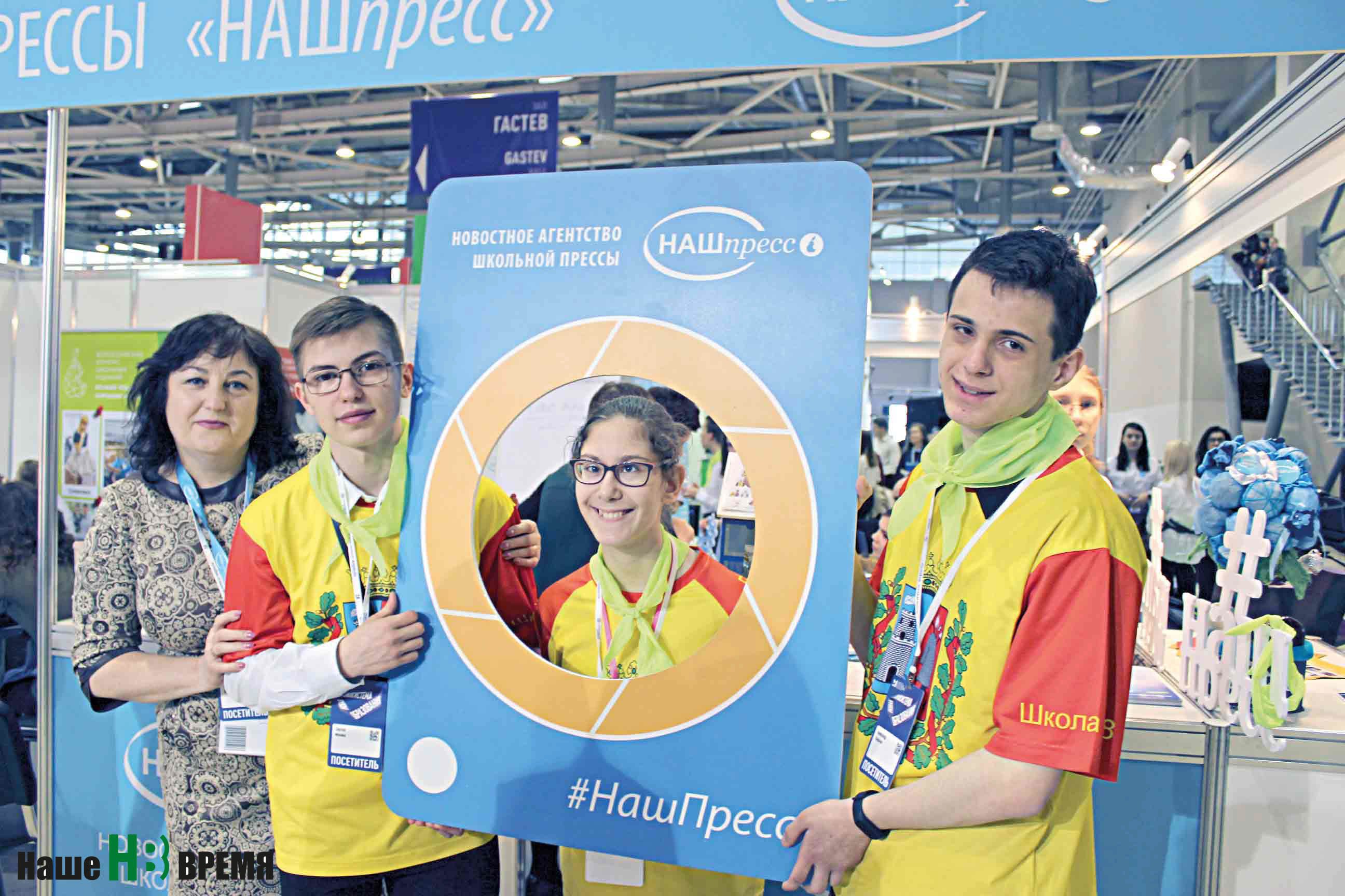 Дипломами победителей за работу в школьном новостном агентстве «НашПресс» на Московском международном салоне образования – 2018 награждены Лариса БОБРОВА, Сергей МАКЕЕВ, Татьяна САМСОНОВА, Александр ПИКАЛЕВ (слева направо).