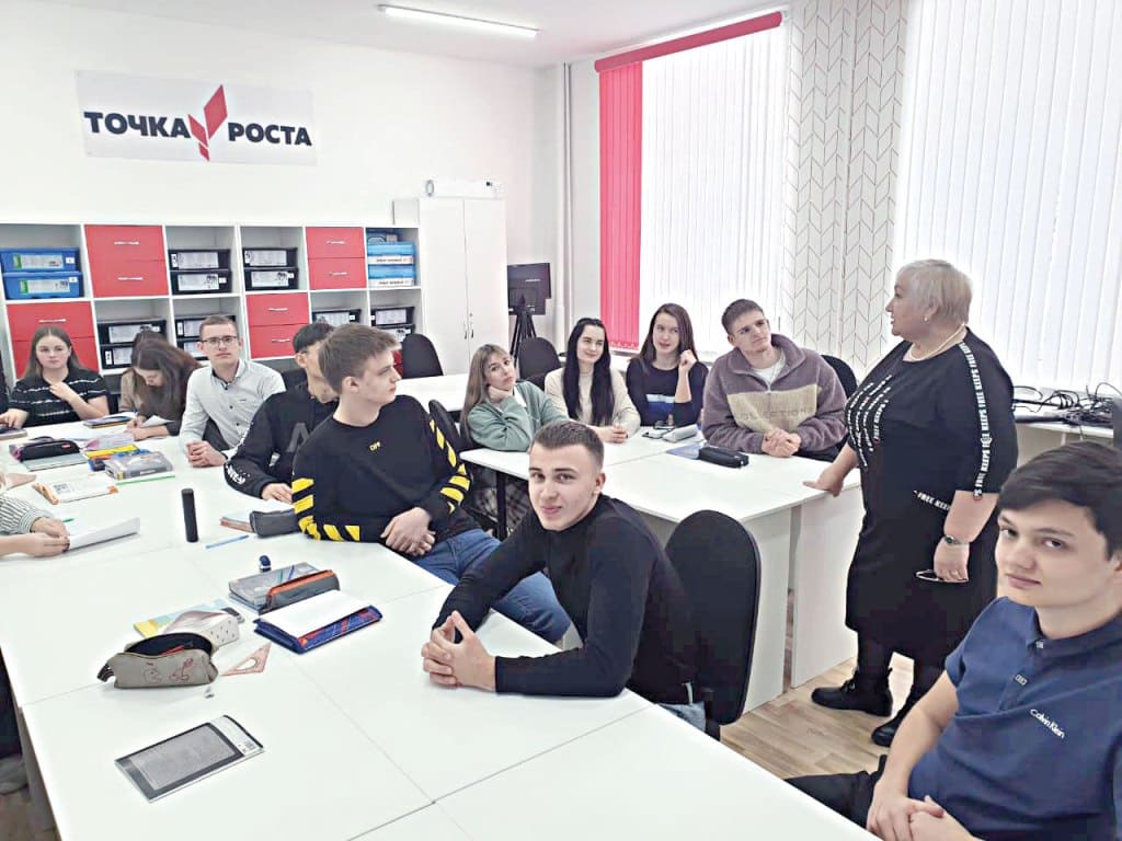 В «Точке роста» Людмила ПОЛОЖЕНЦЕВА обсуждает со старшеклассниками, какая интересная жизнь будет в новой школе.