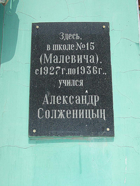 Это по адресу: Соборный, 26. Прежде там была школа, где учился Солженицын, потом другая школа. На этом здании в тот самый день, когда, возвратившись из Вермонта, Солженицын вступил на родную землю, Ростовское отделение ВООПИК поместило первую еще алюминиевую мемориальную доску как знак, указывающий на связь Солженицына с донской столицей.