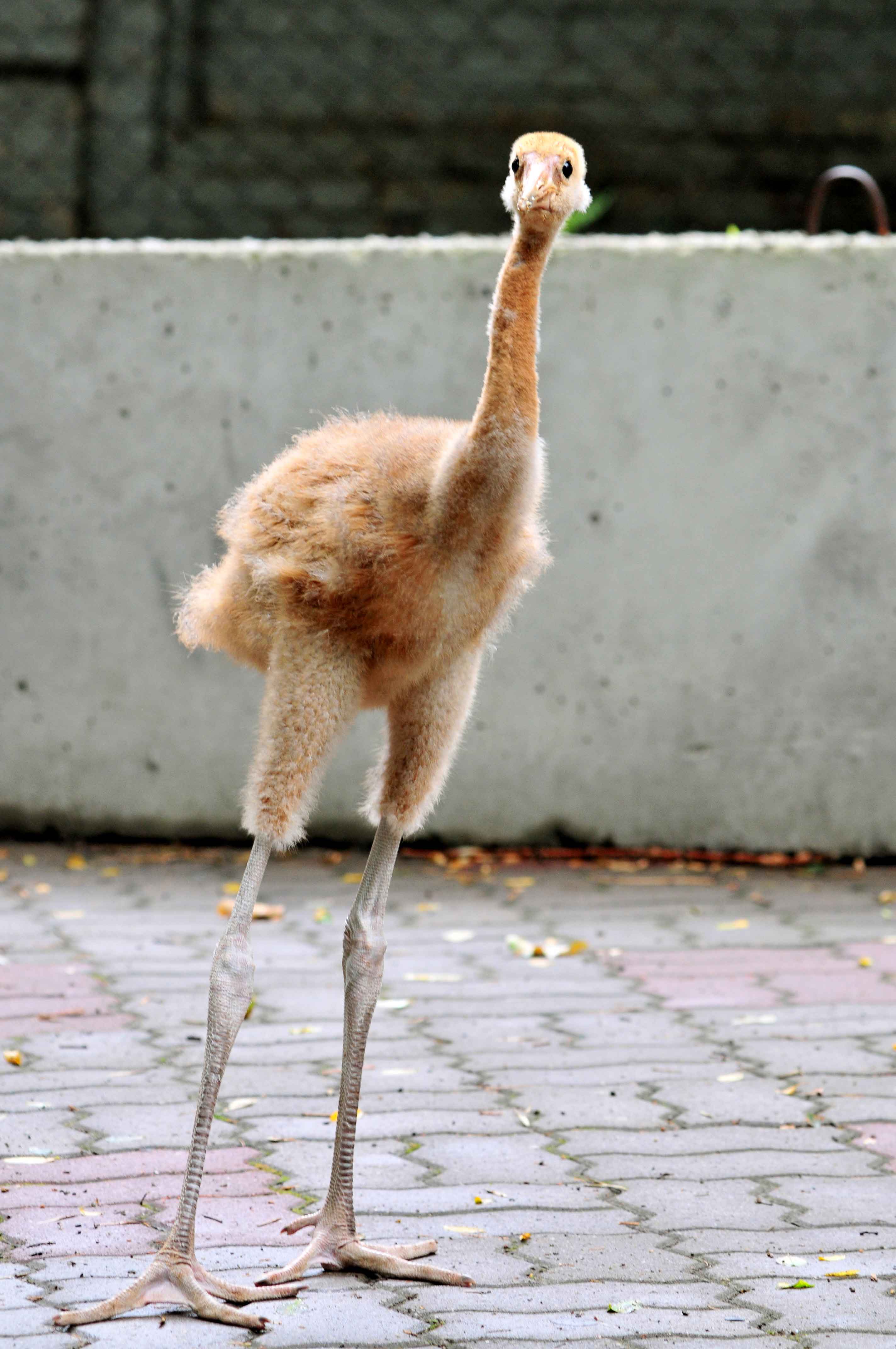 Журавля, да еще японского, в этом птенце узнают не все и не сразу. Японские журавли – белые с широким черным окаемом на крыльях, черно-белой грациозной шеей. А на голове у них – словно красная шапочка. Энди (так зовут журавленка) – в рыжеватом младенческом опушении. Эдакое солнышко на длинных ножках.