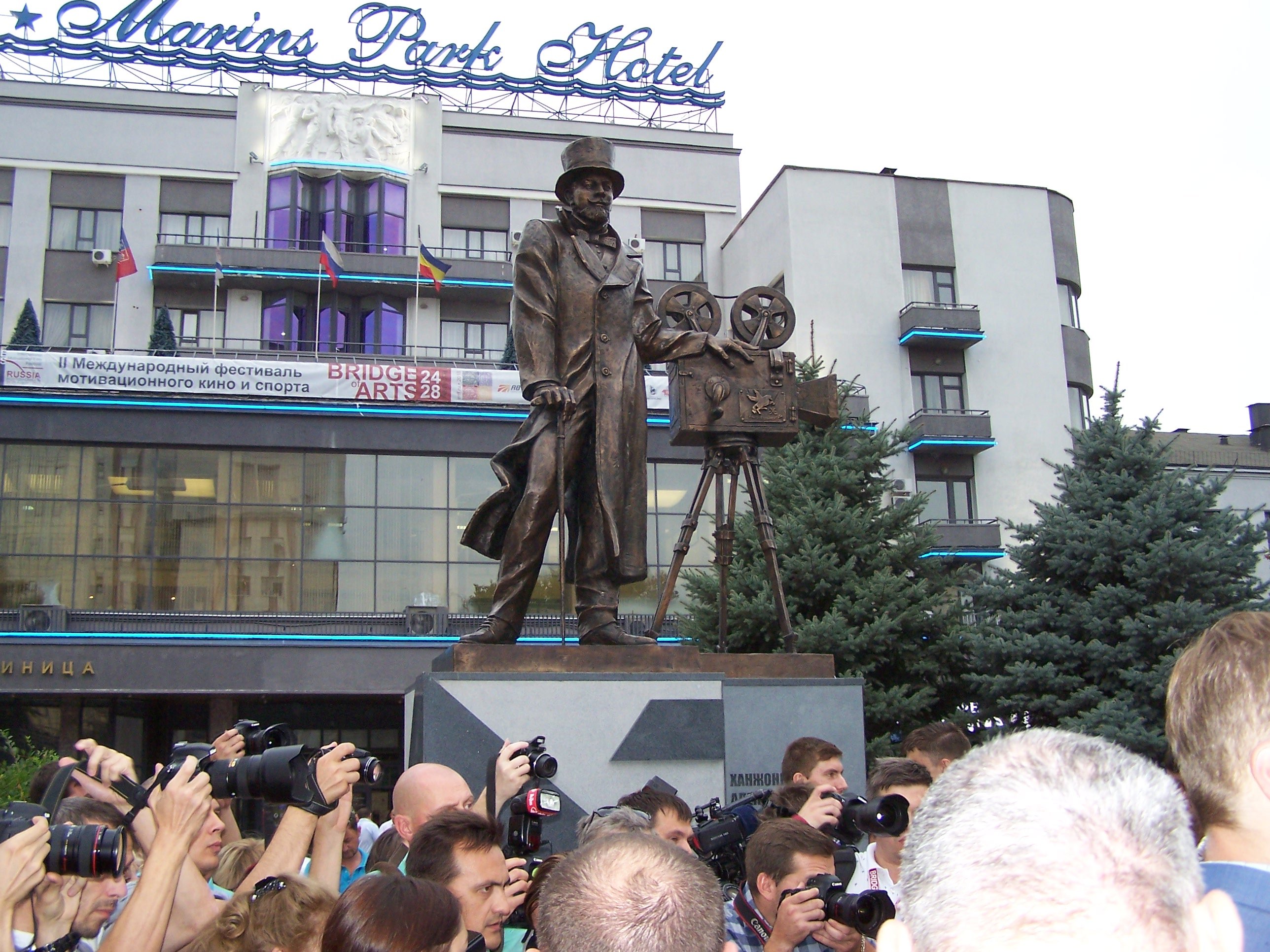 Среди собравшихся на открытие памятника было много медийных лиц: церемонию почтили вниманием участники Международного кинофестиваля «Мост искусств».