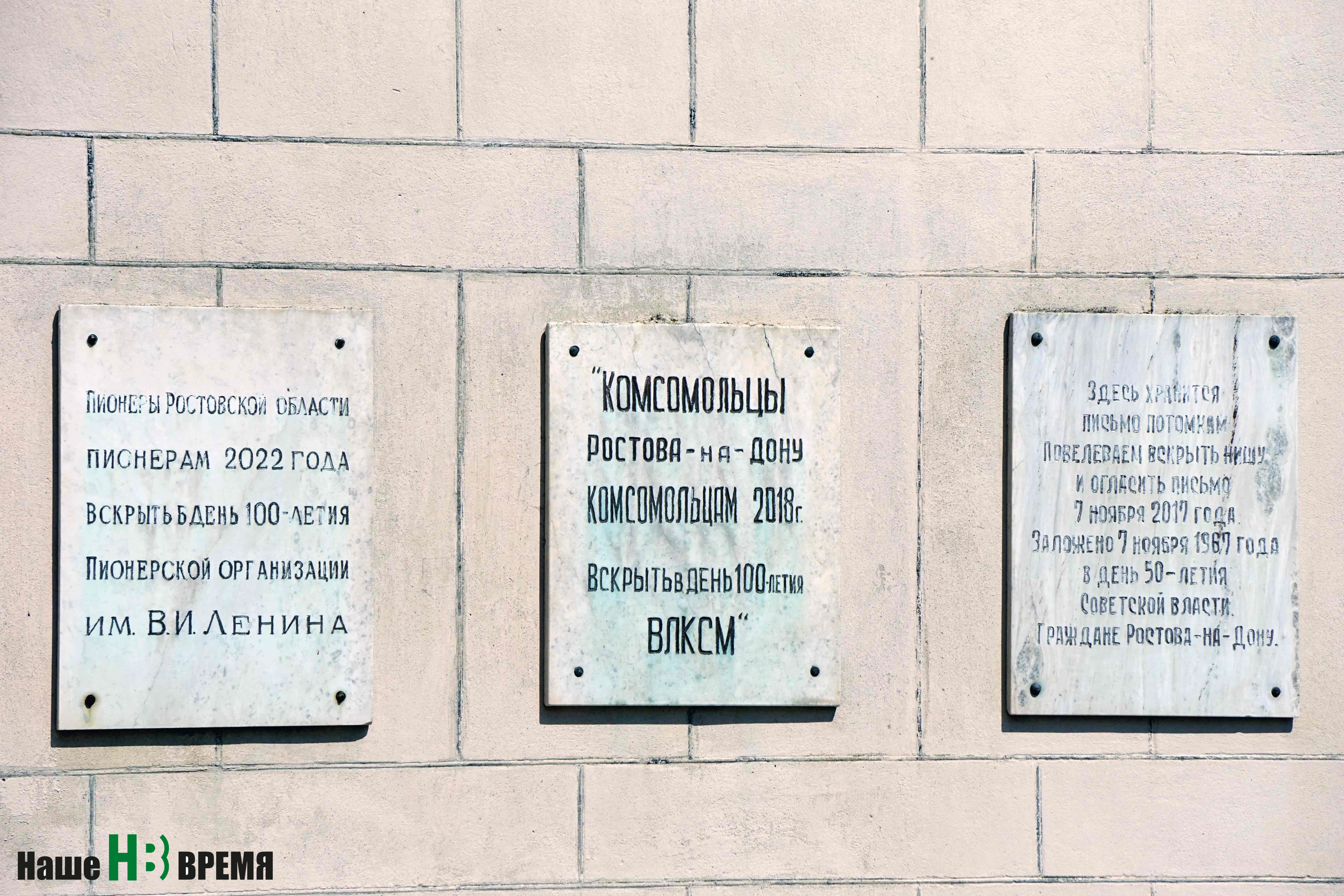 Тем не менее в министерстве культуры Ростовской области говорят, что о капсуле помнят и готовятся организовать ее вскрытие, то есть открутить винты и снять собственно доску с соблюдением всех требований законодательства.