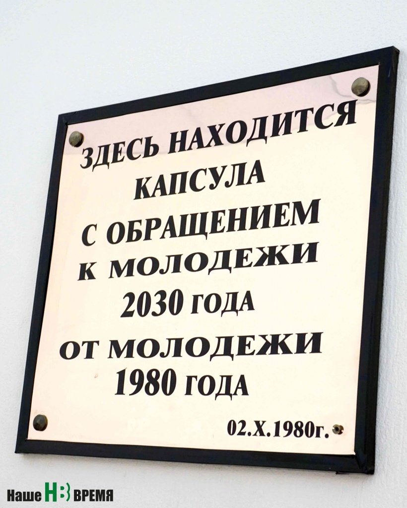 В 1980 году капсулу «от молодежи 1980 года» здесь осмотрительно замуровали в стене внутри помещения, почти напротив кабинета директора.