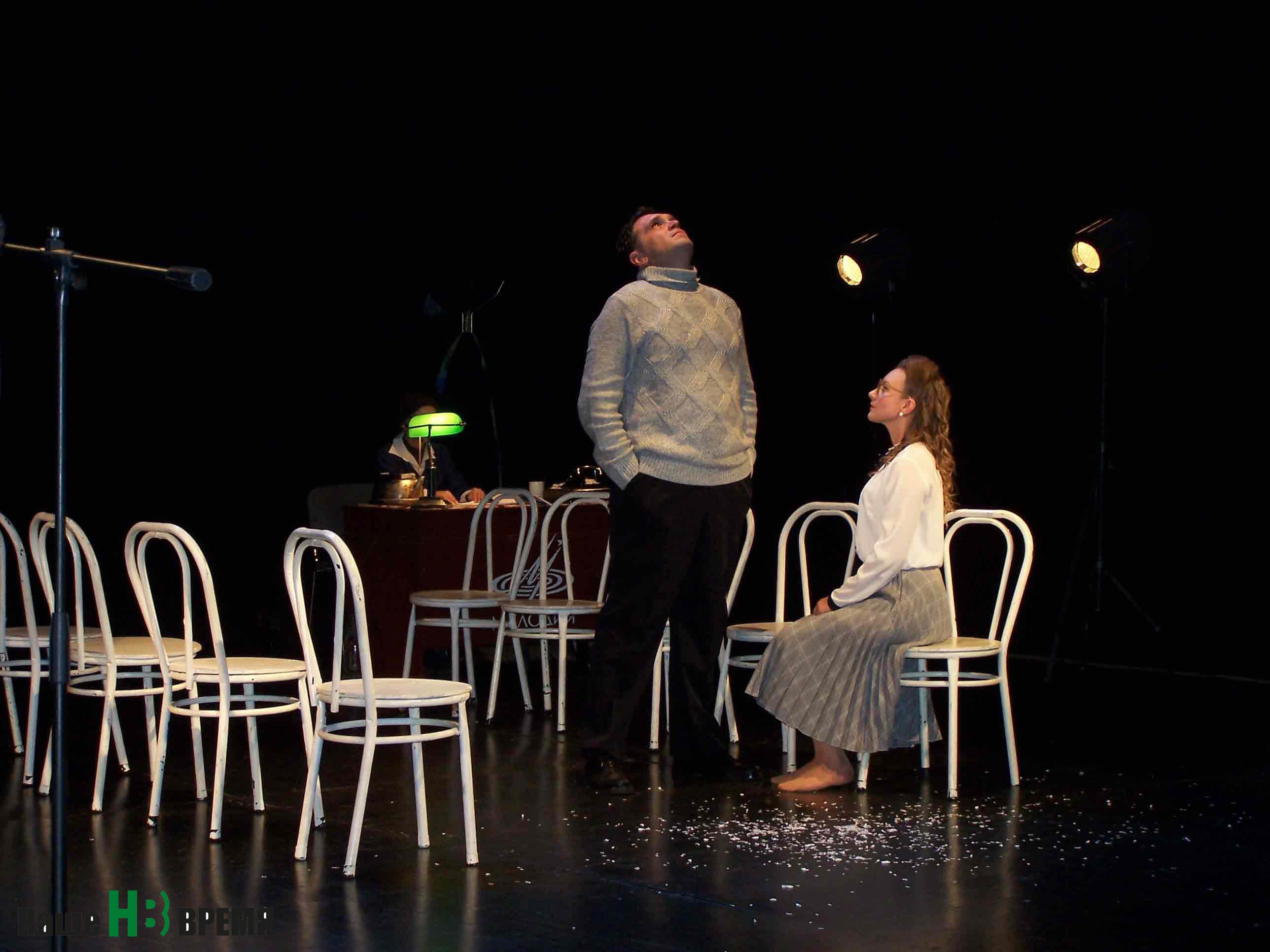 Музыка Шопена, которая у Зорина была ключом к пониманию всей этой неоконченной истории, в спектакле не звучит. Зато в нем есть многоликий персонаж, в пьесе отсутствующий. Это – вахтерша (арт. Раиса Пащенко). Она то воплощает собой бдительного советского гражданина, который всегда начеку, то легко вальсирует в своих огромных – не по размеру – войлочных ботинках, а то вдруг мгновенно переводит фразу, сказанную Гелей по-французски, как бы выдавая этим свое старорежимное прошлое. Остается загадкой, с кем же это странное создание в родстве: с ведьмами или добрыми феями?