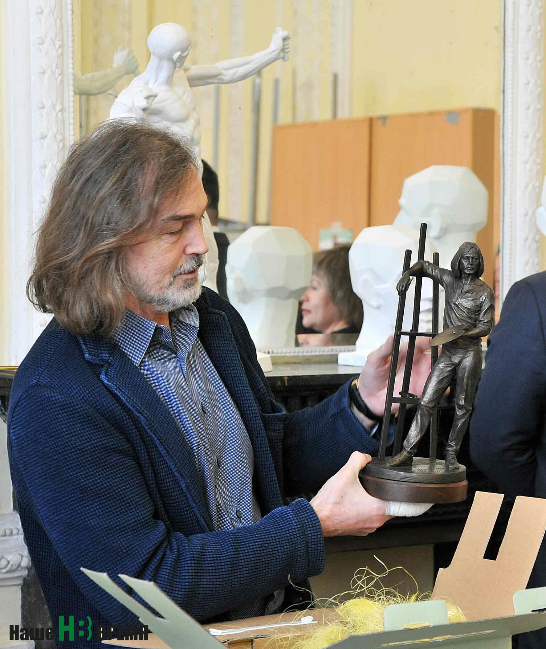 На этом приятные сюрпризы для училища не завершились. Никас Сафронов, приехавший в Ростов, чтобы вручить свои именные дипломы победителям традиционной выставки-конкурса «Творцы XXI века», пообещал и впредь поддерживать лучших студентов материально. Ведь еще раньше все нынешние победители получили от него в награду премии. Училищу Никас преподнес… самого себя. Эту миниатюрную деревянную скульптуру, изображающую Никаса Сафронова у мольберта, художнику подарил губернатор Ленинградской области Полтавченко.