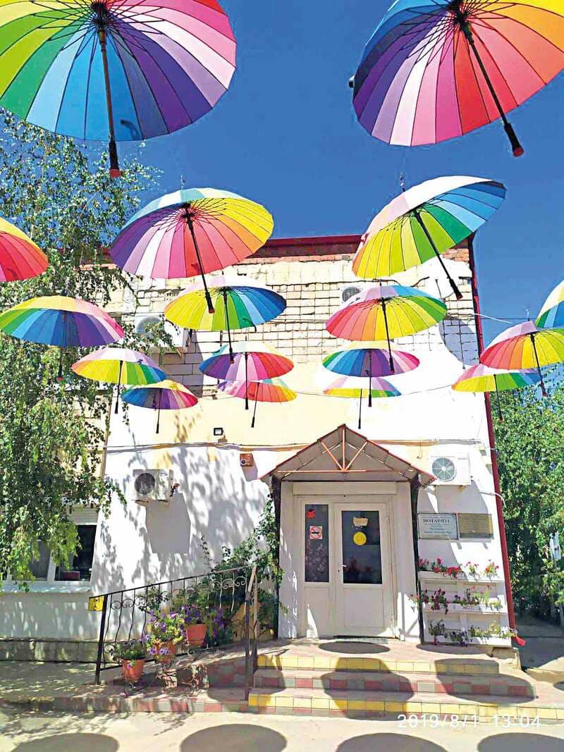 В проект «Красота на Дону» Оксана Гаркушина прислала фотографии и рассказала, что появились зонтики у здания местной нотариальной конторы.