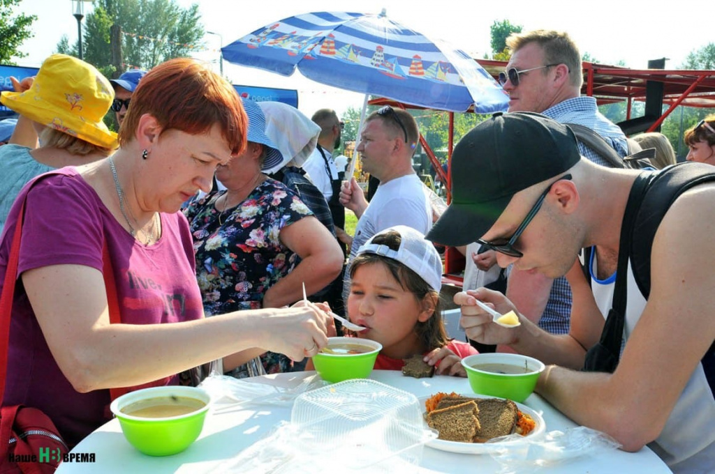 Здесь находился так называемый «центральный» котел, где готовилась уха, которую можно назвать эталонной. Ее можно было отведать совершенно бесплатно, но, помимо этого, рыбные деликатесы всевозможных видов предлагали местные предприниматели. Торговля шла бойко. Нескончаемый поток машин и туристических автобусов разной вместительности подвозил желающих приобщиться к гастрономическому празднику. Кроме того, расписание круизных теплоходов специально было приспособлено к фестивалю.