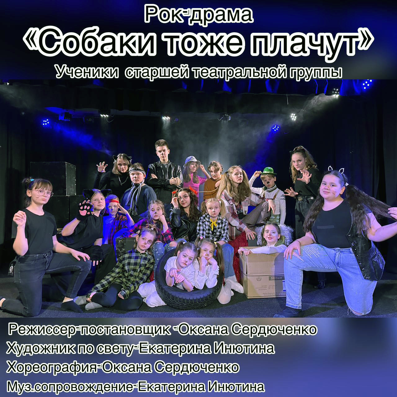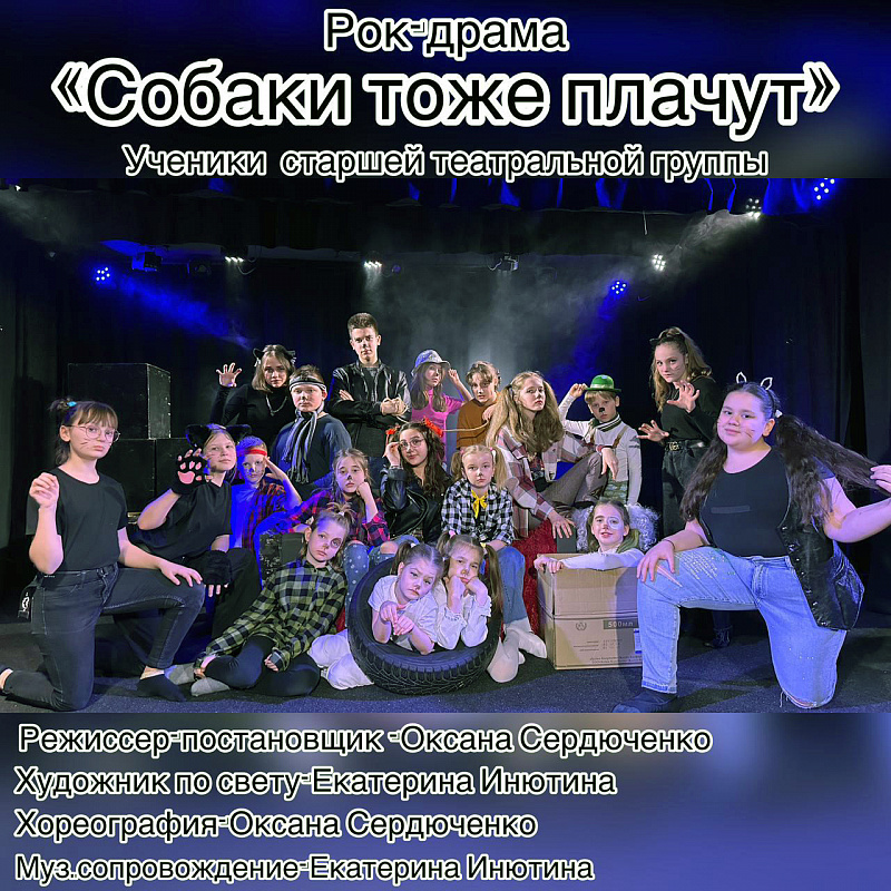 Камерный драматический театр на Северном показал рок-драму «Собаки тоже плачут» по мотивам повести Константина Сергиенко «До свидания, овраг». В актёрском составе – ученики старшей театральной группы. Режиссёр-постановщик – Оксана Сердюченко.