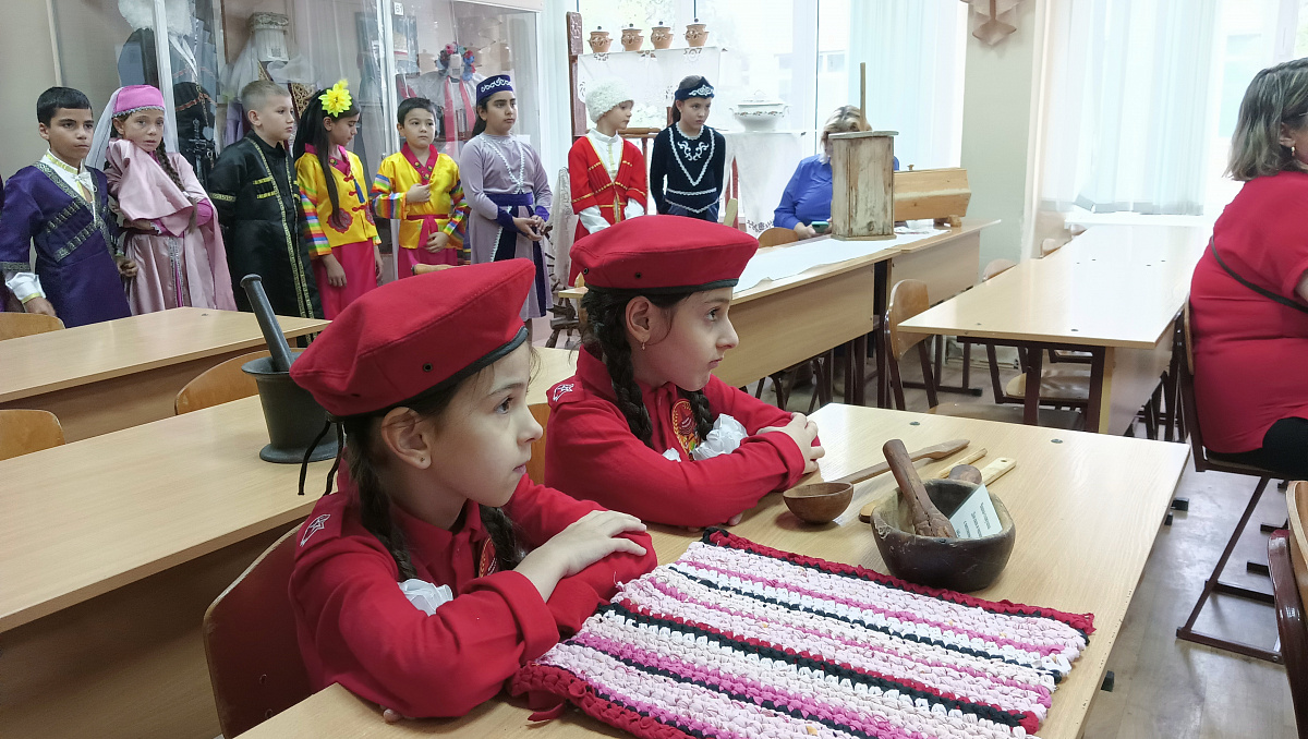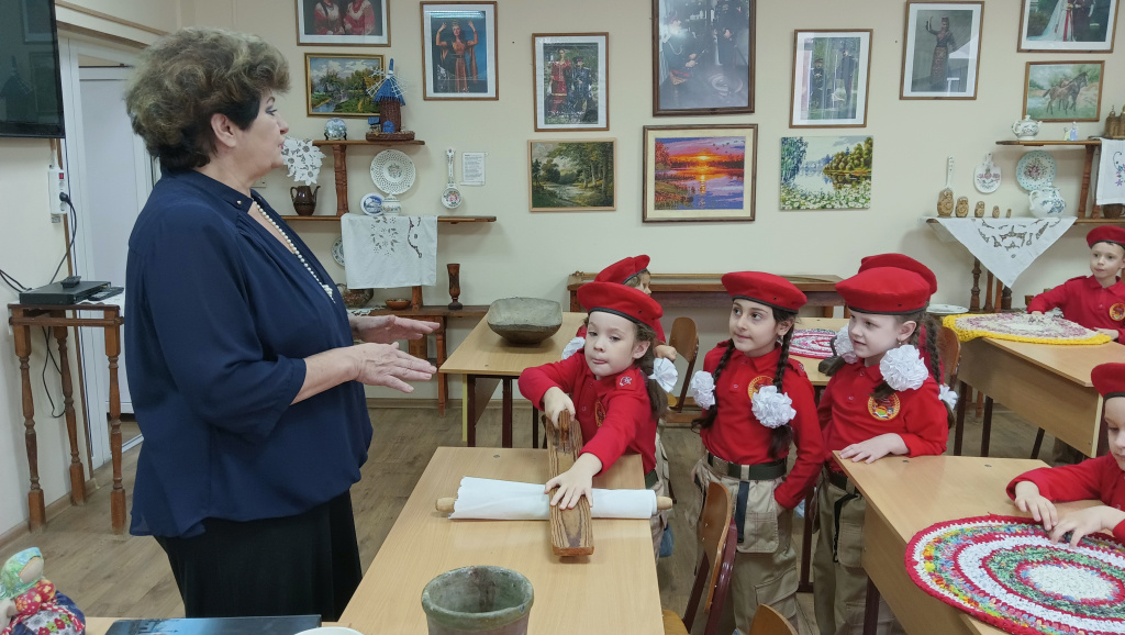 В этнографическом музее школы №107 сегодня гости – воспитанники ростовских детских садов №42 «Пингвиненок», №49 «Олененок» и №137 «Садко».