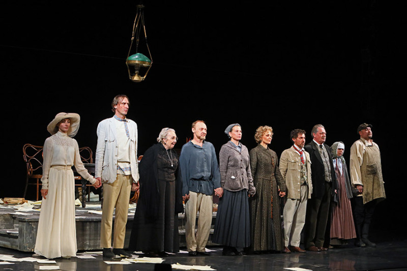 А в финале нынешнего спектакля Соня яростно сметает со стола бумаги (как ненавистно сметал их из шкафа Войницкий, за которыми была упрятана баночка с морфием. Видимо, это расчеты, заметки – каторжный их труд) и отчаянно кричит про сужденный им длинный ряд дней и долгих вечеров, которые надо выдержать не ропща. А небо в алмазах и отдых будут не здесь, а за гробом. Какая уж тут надежда… Это призыв к мужеству жить дальше на грешной земле так, как выпало им.