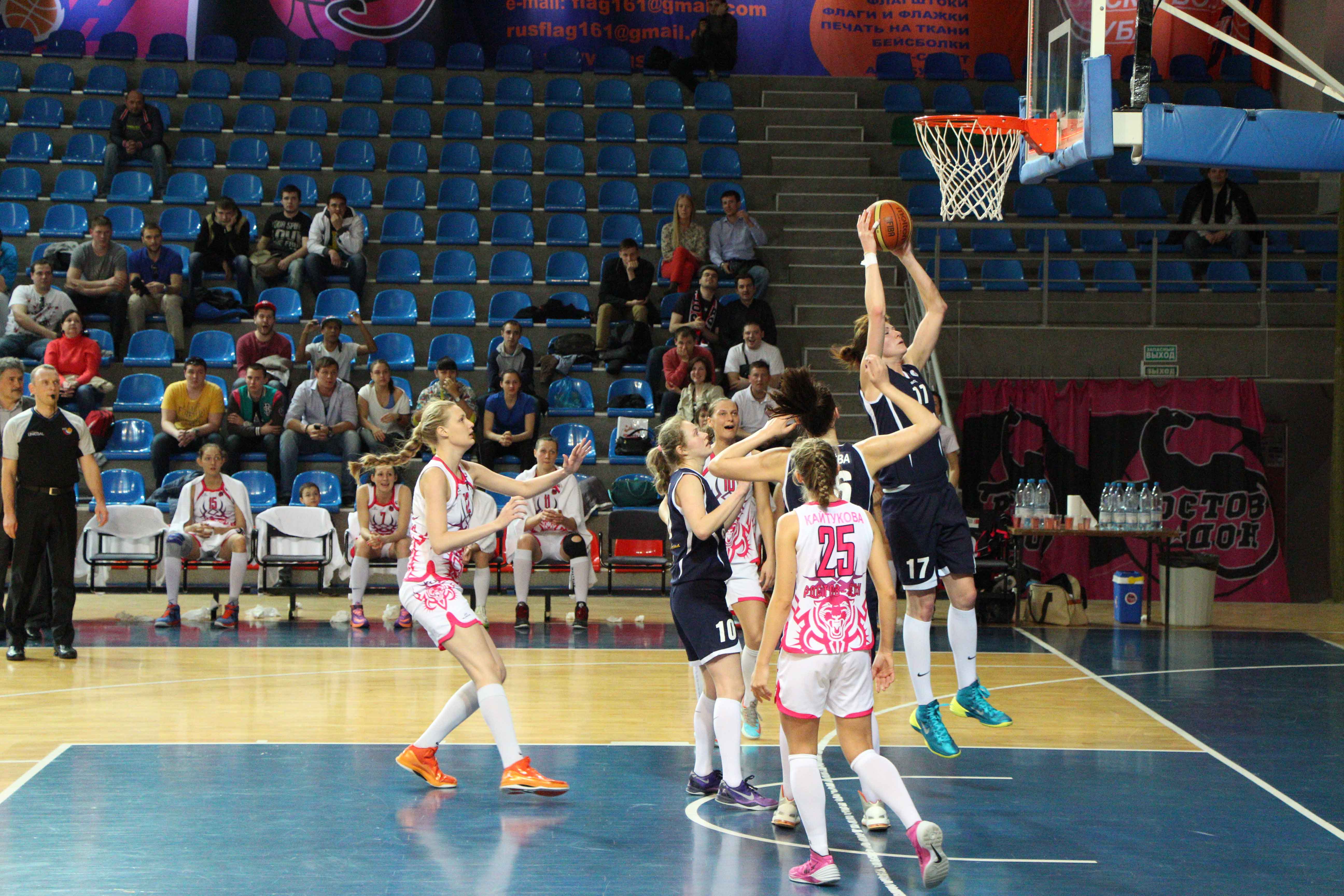 Стартовая четверть первого матча прошла в достаточно равной борьбе, и наши гостьи, которые в таблице находятся гораздо ниже ростовчанок, действовали решительно и грамотно. Только при счете 17:16 точный бросок Сумец в концовке десятиминутки реально вывел хозяек вперед — 19:16.