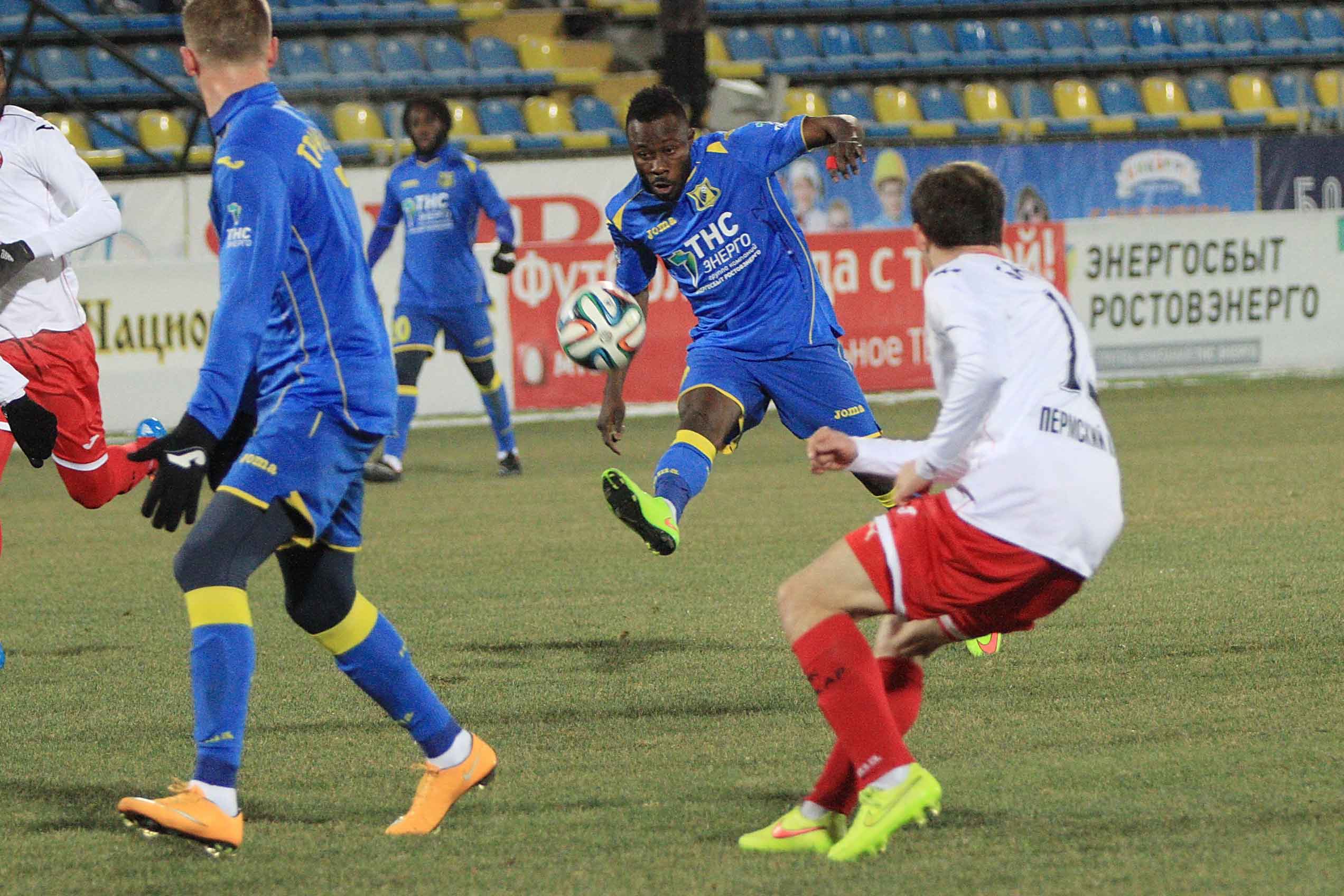 Ростовчанам понадобилось некоторое время, чтобы прийти в себя, но уже в середине тайма «желто-синие» снова владели территориальным и игровым преимуществом. Опасно били по воротам Калачев и Гацкан — их ударам немного не хватило точности. Вскоре гости сбили Кангу на линии своей штрафной, и шанс отличиться получил Калачев, увы, крученый удар на сантиметры разминулся с «девяткой».