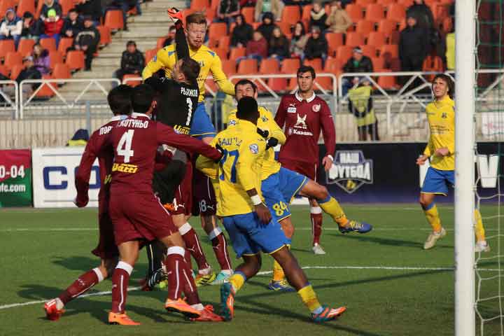 Далее последовал угловой, и свой шанс получил уже Оздоев – вратарь выручил снова. Не стал проблемой для донского голкипера и дальний «выстрел» Камболова – мяч был надежно принят на грудь.