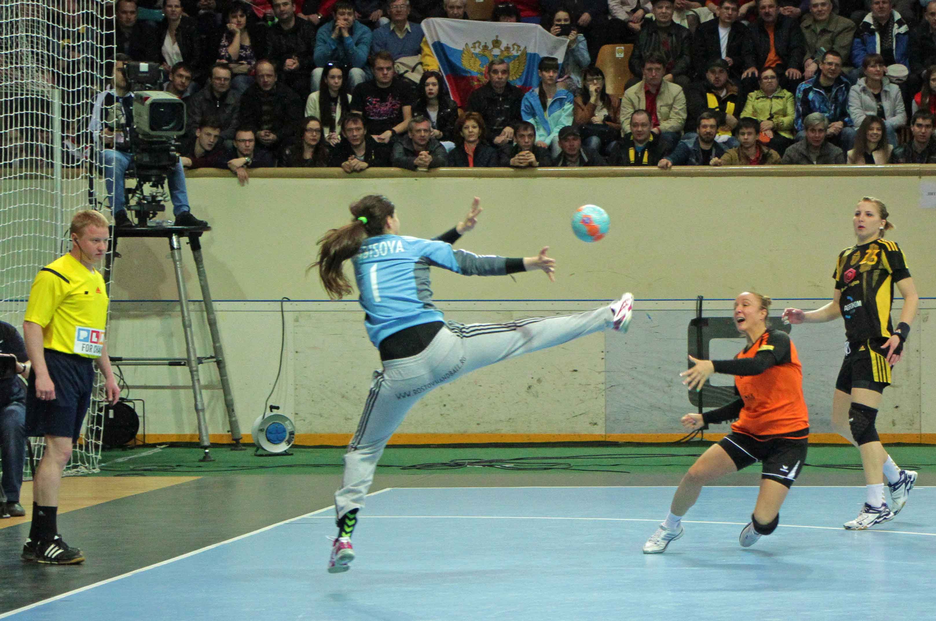 Забивает Манагарова, вколачивает мяч Сливинская – 8:12.Затем ростовчанки оказываются в большинстве. Ильина реализует пенальти, а Борщенко забивает в атаке – 12:13.
