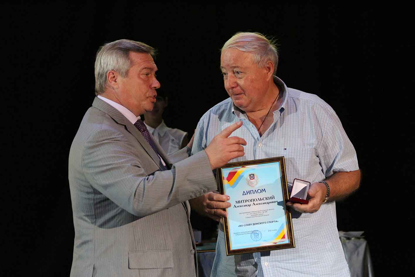 Особенно приятно было увидеть среди награжденных нашего коллегу Александра Митропольского, в свое время возглавлявшего в «Комсомольце» отдел спорта – свою награду он получил в качестве пресс-секретаря Ростовской областной «Федерации спортивной борьбы».