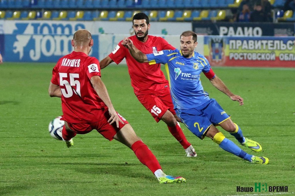 На 17-й минуте ростовчане получили право на штрафной в 30 метрах от ворот. Калачев навесил, Навас в штрафной головой сбросил мяч на линию вратарской Баштушу, однако того опередил Нахушев и срезал снаряд в свои ворота.