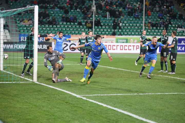С точки Мамаев уверенно переиграл Джанаева – 1:0. Однако спустя всего две минуты ростовчане отыгрались. Калачев навесил в штрафную, где Азмун, взлетев выше всех, головой переправил мяч в сетку – 1:1.