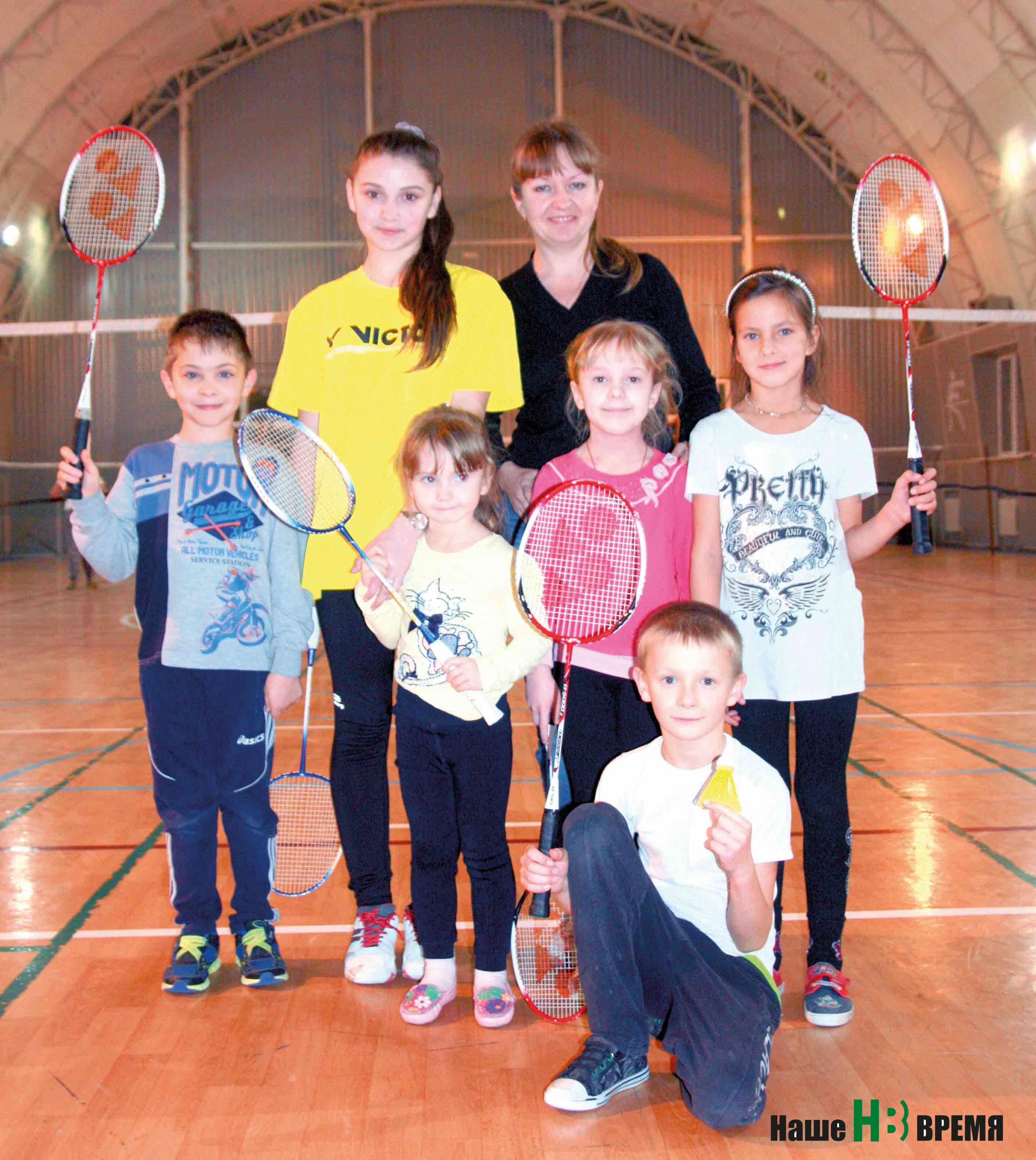 Тренер Елена Кривенко (в третьем ряду справа) со своими воспитанниками: в поселке Углегорском все большую популярность среди малышей и подростков обретает бадминтон.