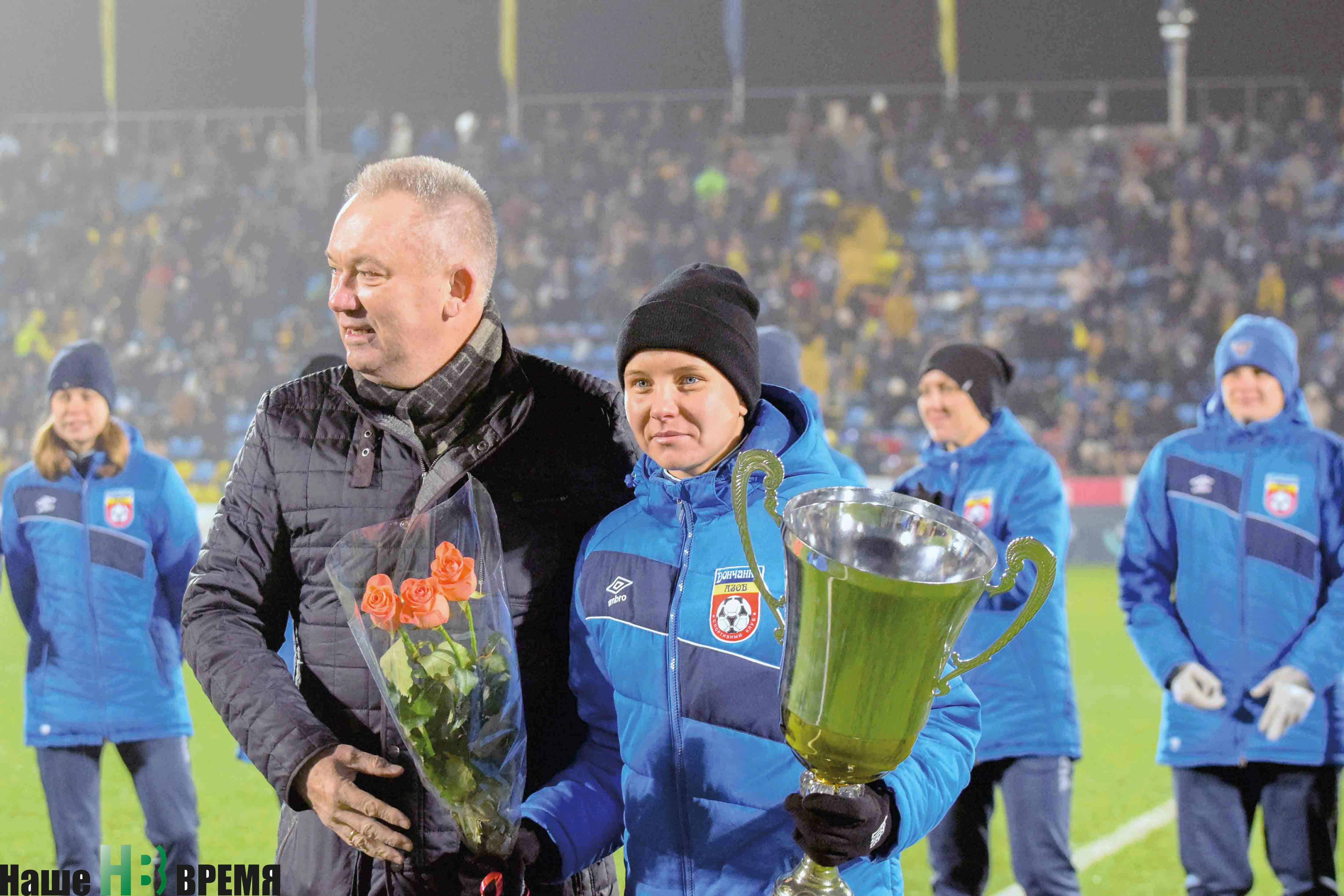 Чемпионок России чествовали в перерыве матча «Ростов» - «Анжи». Почетный трофей – чемпионский кубок – девушкам вручил заместитель министра по физической культуре и спорту Ростовской области, председатель совета директоров ФК «Ростов» Петр Серов (на фото).