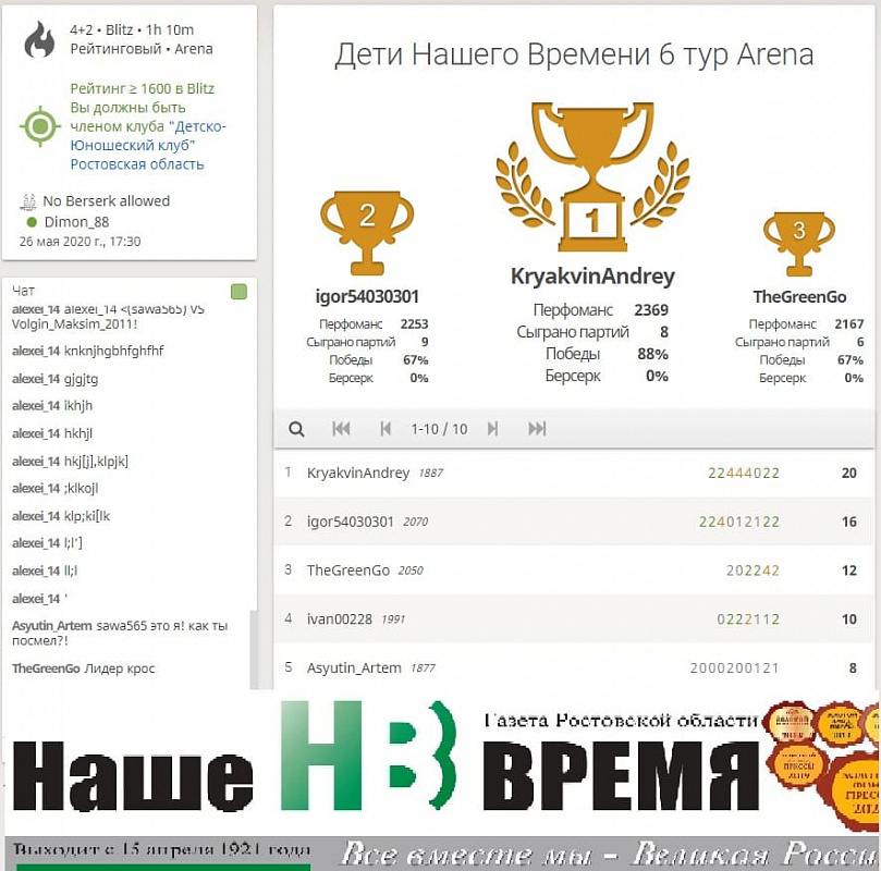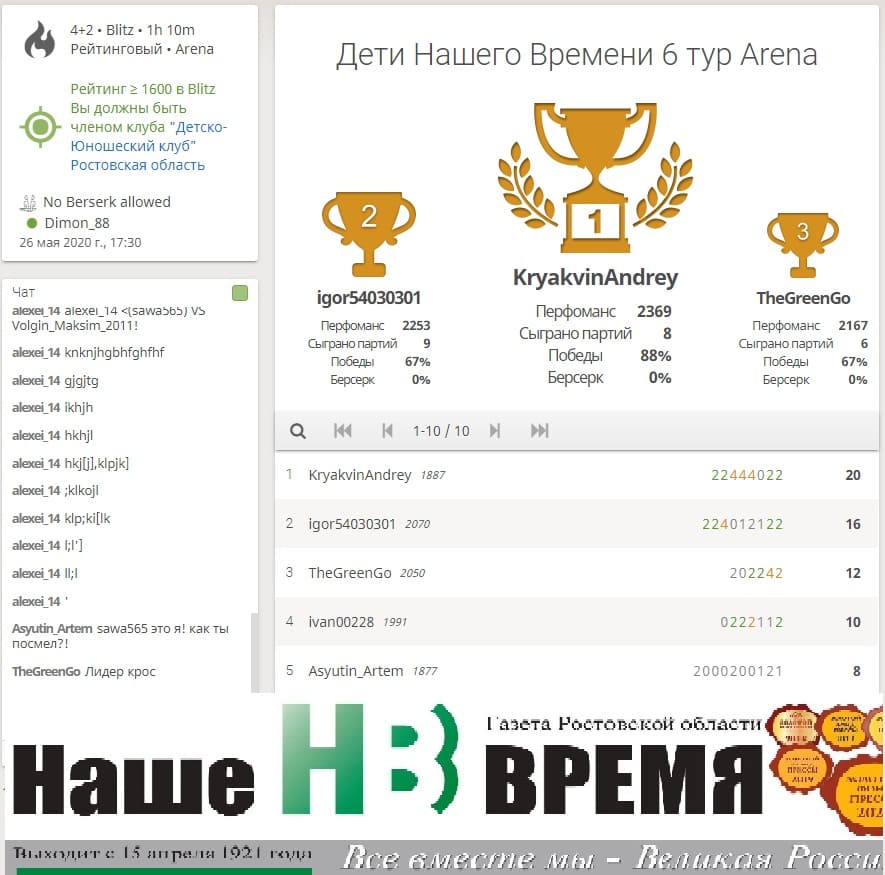 «Шахматная «Лига «Нашего времени» открывает новые имена» - так назывался отчет о предыдущем турнире https://www.nvgazeta.ru/news/12382/575420/ , сыгранном в сообществе «Детско-юношеский клуб Ростовской области». Оно, напомним, было создано на базе lichess.org по инициативе газеты «Наше время» и детско-юношеской комиссии региональной федерации шахмат.
