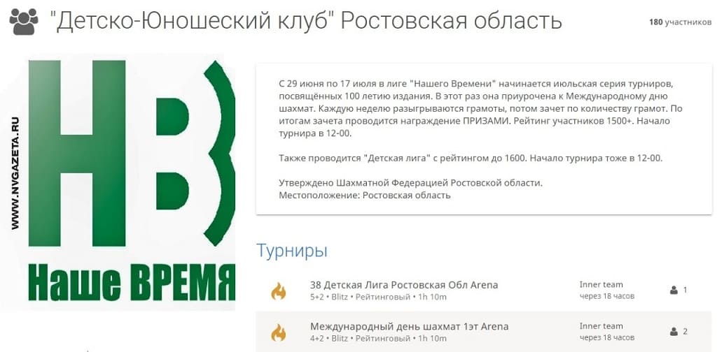 29 июня в лиге "Нашего Времени", созданной в сообществе «Детско-юношеский клуб Ростовской области» на портале lichess.org по инициативе редакции газеты «Наше время» и детско-юношеской комиссии шахматной федерации донского региона, стартовала новая серия турниров к 100-летию издания.
