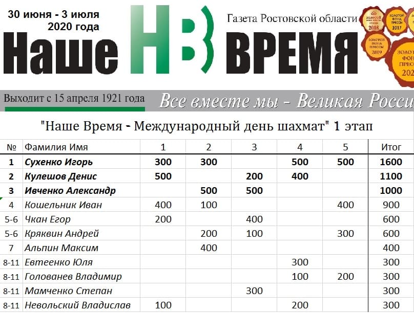 Впереди еще две серии из пять таких турниров. Их итоги будут суммированы к 20 июля, когда отмечается Международный день шахмат. Учреждение призов для поощрения отличившихся ребят приветствуется.