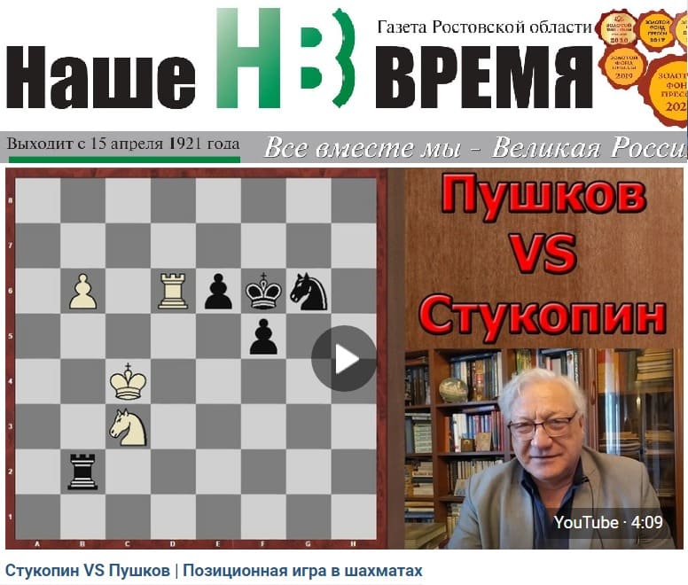 Однако, сегодня тот же Андрей Стукопин участвует в другом нашем онлайн проекте - «Шахматный Гэндальф». И, не исключаем, что пока даже не… знает об этом. Спикер этого проекта многократный чемпион мира, Европы и России среди ветеранов Николай Пушков нашел в своем архиве партию, которую он сыграл с 12-летним Стукопиным, в ту пору еще кандидатом в мастера спорта, на чемпионате области среди мужчин в Азове.