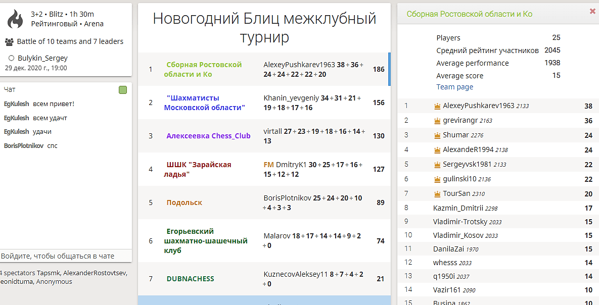 Соперниками сборной Ростовской области на новом турнире были команды «Шахматисты Московской области», «Алексеевка Chess_Club», DUBNACHESS, вологодский «Чемпион». Дончане не оставили им шансов на успех. Они финишировали со 186 зачетными балами. У команды «Шахматисты Московской области», оказавшейся второй, - 156 баллов. «Бронза» - у команды «Алексеевка Chess_Club» (130 баллов).