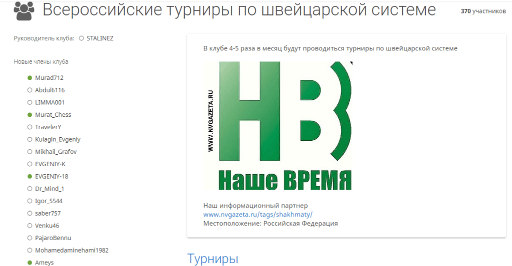 В онлайн сообществе «Всероссийские турниры по швейцарской системе», созданном четыре месяца назад по инициативе газеты «Наше время», сыграны первые двадцать турниров.