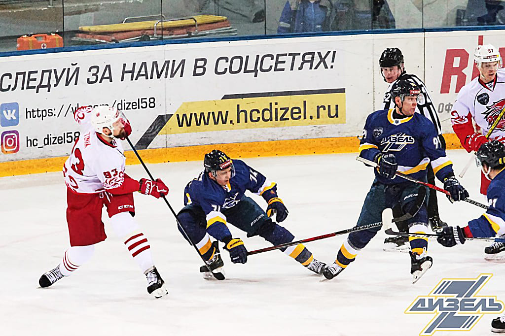 Подобная игра продолжилась в начале второго периода. Но на сей раз хозяева сыграли удачливее – 1:1. Не прошло много времени, как «Дизель» вышел вперед – 2:1. В конце двадцатиминутки пензенцы забили еще одну шайбу – 3:1.