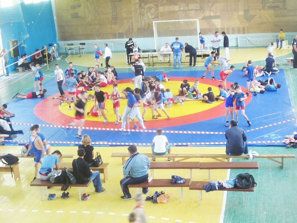 На фото: Когда в спортзале ДЮСШ проходят соревнования по греко-римской борьбе, в зале становится тесновато.