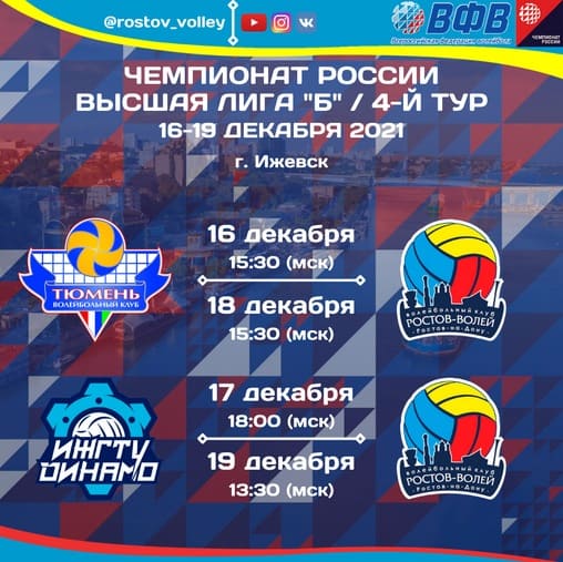 ВК «Ростов-Волей»сыграет по два раза с волейболистами клуба «Тюмень ТюмГУ» и хозяевами тура командой «ИЖГТУ-Динамо».