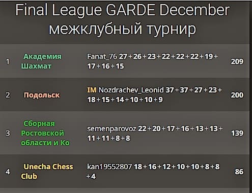 В межрегиональной шахматной лиге «GARDE» завершилась финальная серия соревнований. Ее итожил турнир под названием «Final League GARDE December».