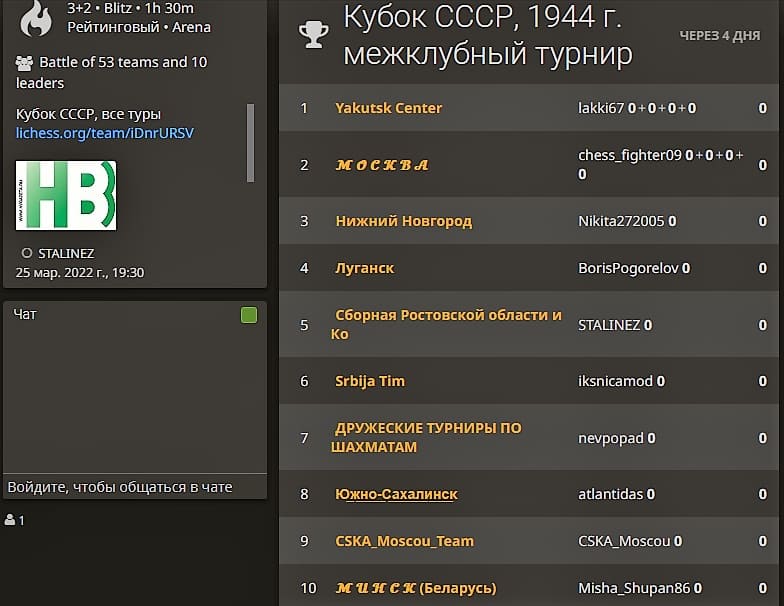 Команды-участницы международного шахматного онлайн сообщества «СССР», созданного для организации турниров, которые приурочены к 100-летию образования Советского Союз, прошли регистрацию на соревнования под названием «Год 1944-й».