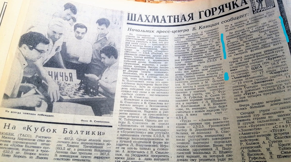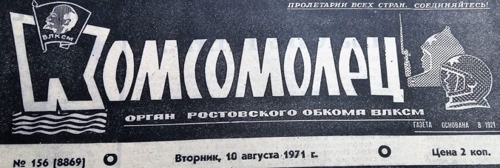 Публикация в газете «Комсомолец» от 10 августа 1971 года о турнире в Ростове с участием Анатолия Карпова