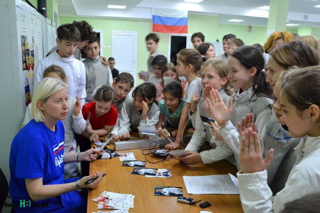 В ДЮСШ № 4 прошла встреча олимпийского чемпионата по прыжкам на батуте Александра Москолькова с ребятами, занимающимися акробатикой и прыжками на батуте. В спорткомплексе «Лидер» гости встретились с фехтовальщиками города. Двукратная олимпийская чемпионка, чемпионка мира, участница пяти олимпиад Татьяна Логунова вместе с ростовчанкой, олимпийской чемпионкой Светланой Бойко поделилась секретами мастерства с юными спортсменками, прибывшими на встречу во всеоружии – с рапирой и маской…