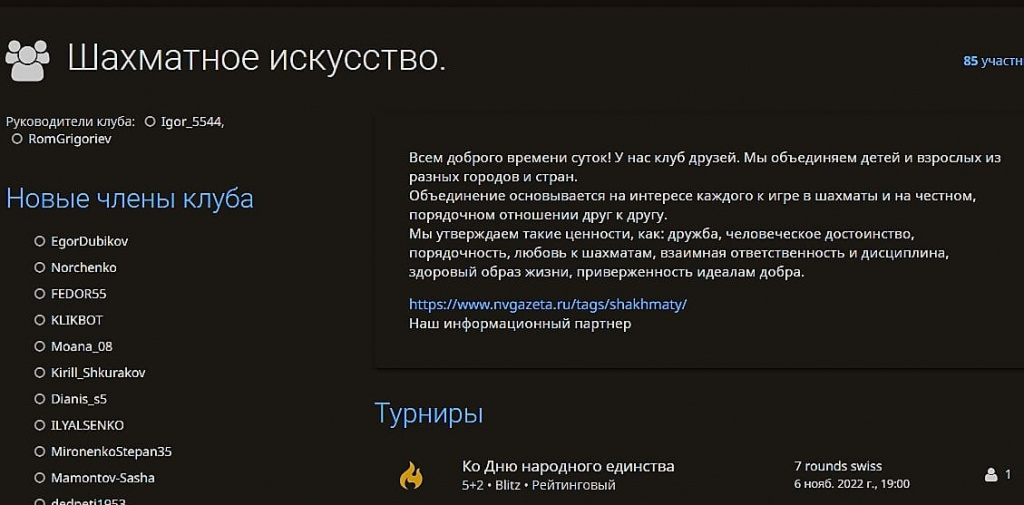 «Ко Дню народного единства» - так называется турнир, который по предложению «Нашего времени» внесен в календарь соревнований на международной сетевой платформе Lichess. Он стартует 6 ноября, в 19 часов.