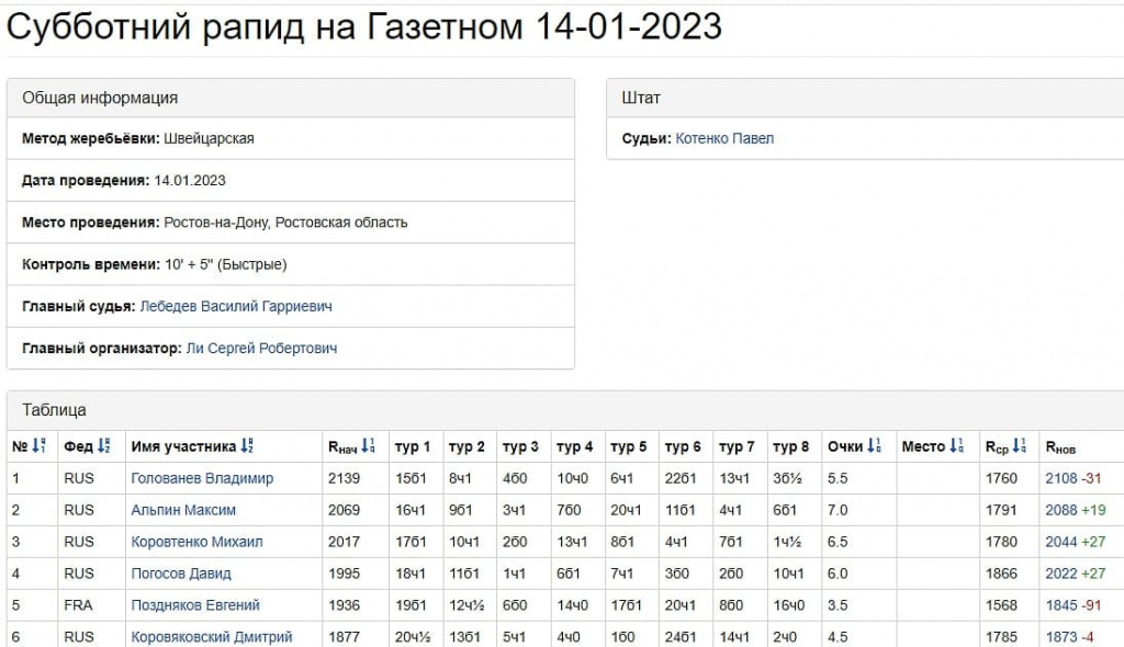 Итоги двух ростовских рапидов, которые состоялись менее суток назад, оперативно утвердила Федерация шахмат России. Эти соревнования по быстрым шахматам – детско-юношеское и массовое для всех желающих – проводились на базе городского шахматного клуба, что на Газетном, 92. Национальной федерацией по данному виду спорта они зарегистрированы в качестве профессиональных рейтинговых соревнований.