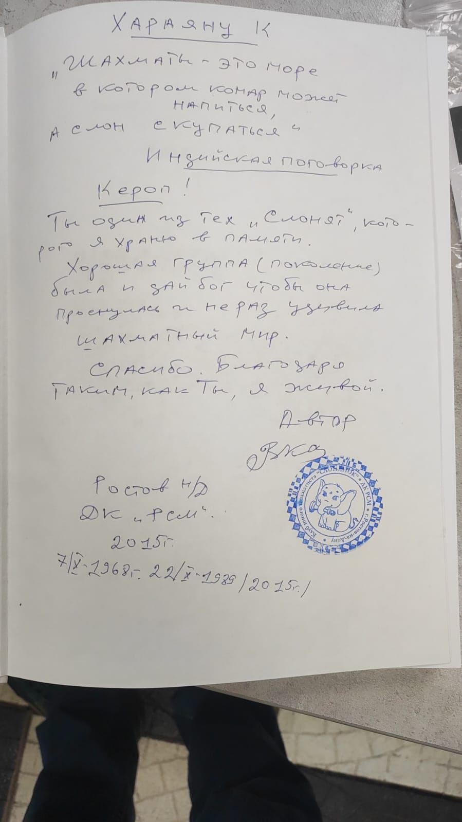 Это ему, Керопу, Владимир Канцын подарил свою книгу с таким автографом: «Кероп! Ты один из тех «слонят», которого я храню в памяти. Хорошая группа (поколение) была и дай Бог, чтобы она проснулась и не раз удивила шахматный мир. Спасибо. Благодаря таким, как ты, я жив. Автор».
