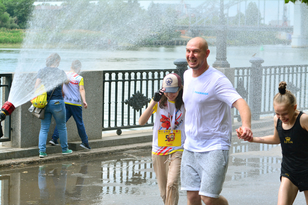 После участники и гости события много фотографировались и общались. Желающие отдыхали в тени или пробегали под брызгами воды из брандспойтов пожарной машины.