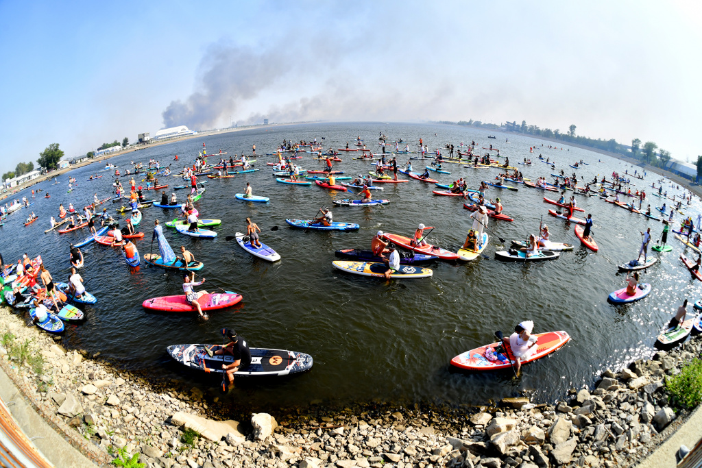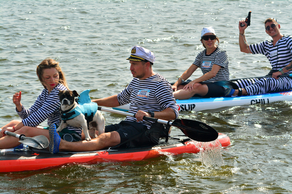 Фестиваль объявляется открытым, и десятки человек на сапбордах отправляются к мемориалу «Тачанка-Ростовчанка», а потом обратно. Дистанция составляет пять километров.