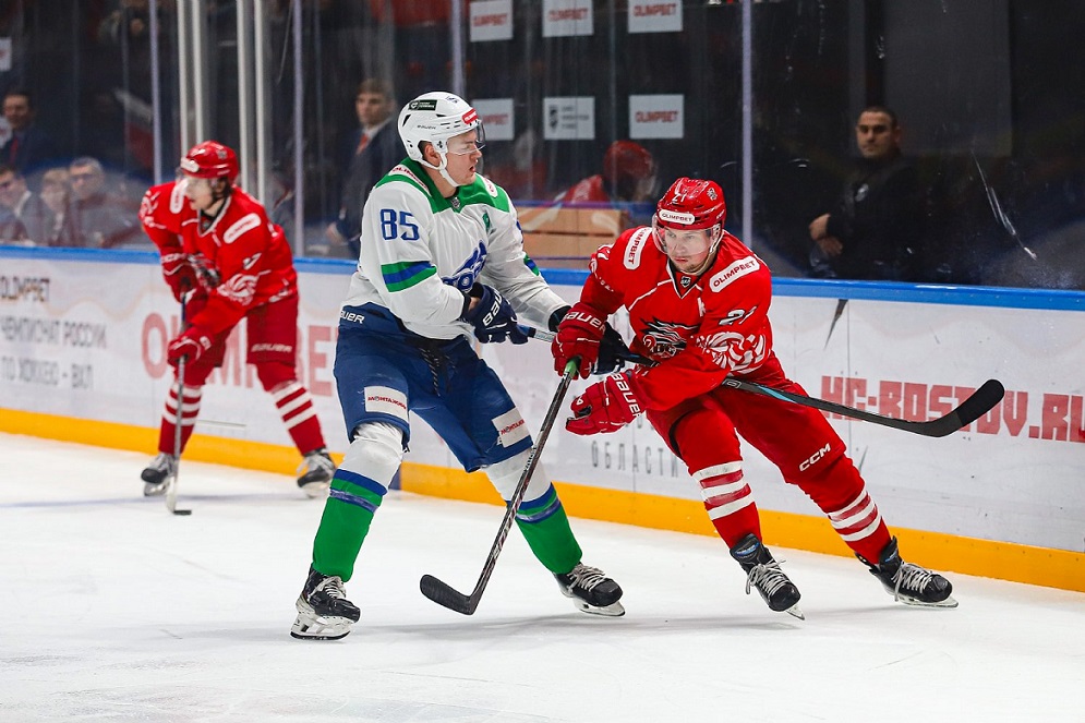 Первый период хозяева, которых взбодрил недавний выигрыш у сильного соперника – удмуртской «Ижстали», провели в атаках. Инициатива была на стороне ростовчан. Они больше соперников владели шайбой и, в конце концов, открыли счет. Точным броском отличился Смолев, который использовал точную передачу Сергиевского –1:0. Забив, ростовчане посчитали, что дело сделано и далее игра пойдет под их контролем. И на какое-то время расслабились. За что тут же были наказаны соперником –1:1.